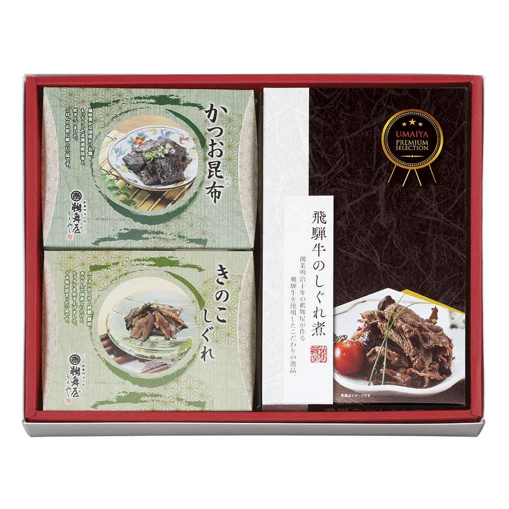 (飛騨牛のしぐれ煮、かつお昆布、きのこしぐれ詰め合わせ)