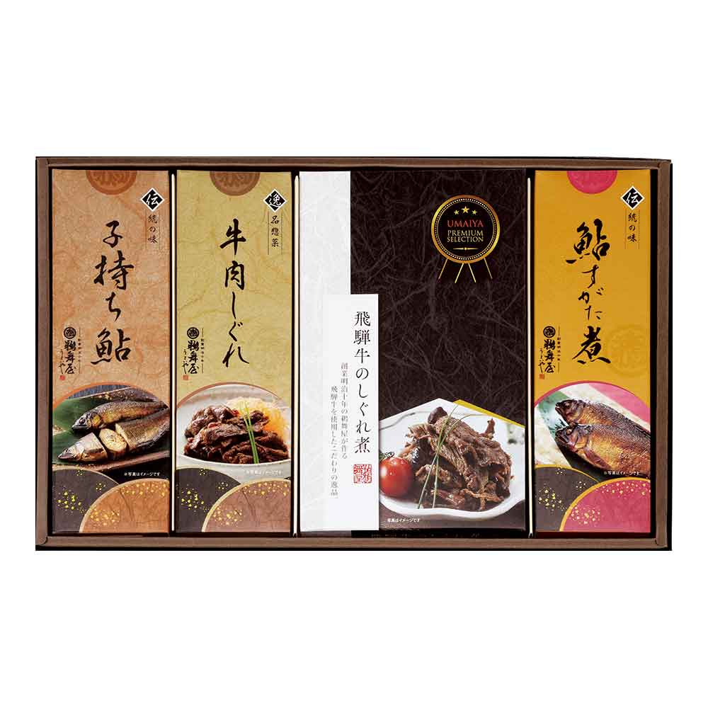 (子持ち鮎、牛肉しぐれ、飛騨牛のしぐれ煮、鮎すがた煮 詰め合わせ)
